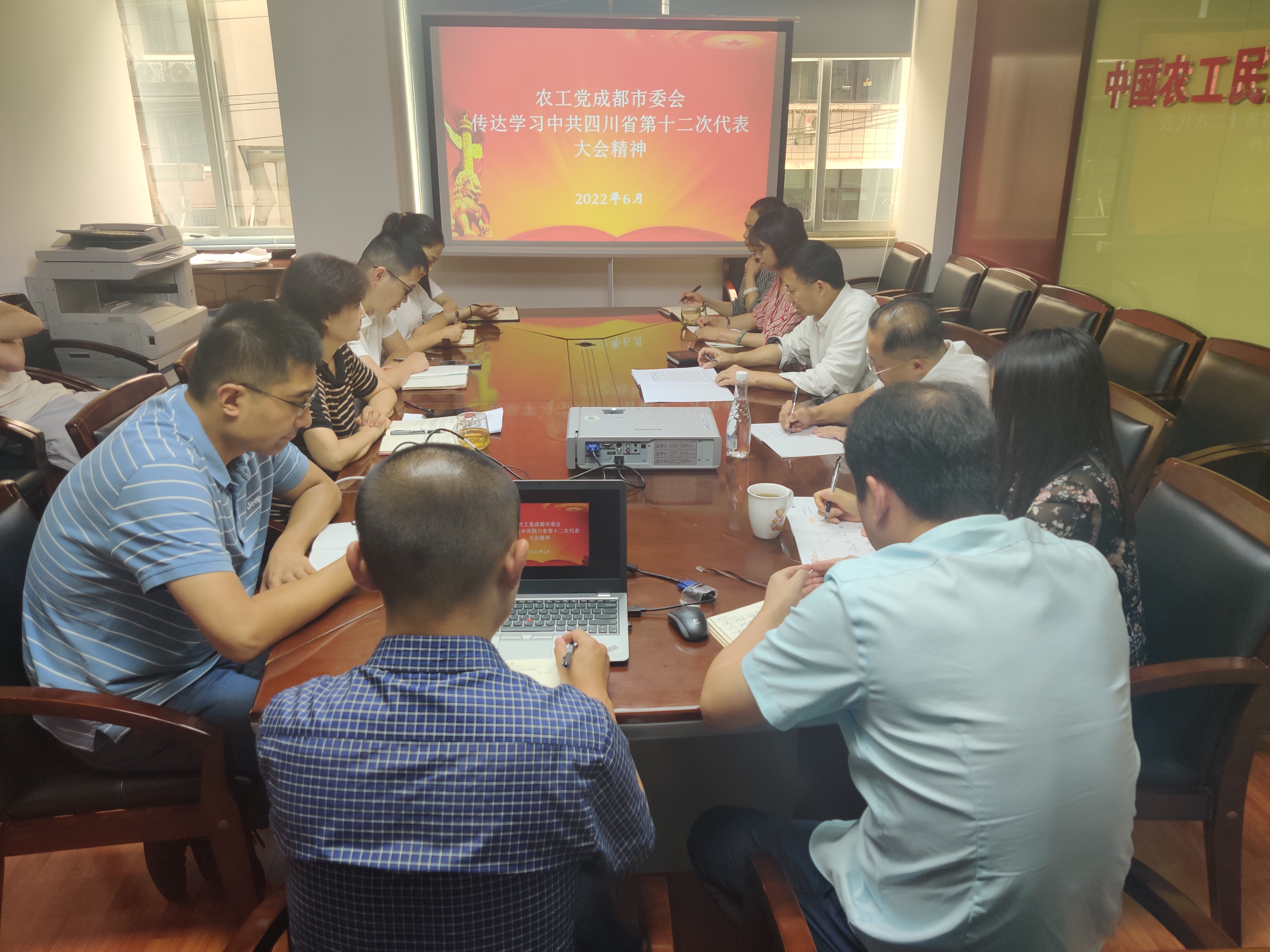 6月2日,农工党成都市委会召开专题会议,传达学习中共四川省第十二次代表大会精神。成都市下载bst365_365封号提现了没到账_365bet体育赌博副主席、农工党成都市委会主委甘华田主持会议并讲话,市委会副主委胡伟峰、秘书长曾琪及全体机关干部参加会议。