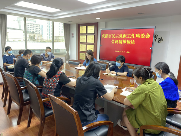 7月25日,民进成都市委会召开机关工作会,传达学习成都市民主党派工作座谈会精神。机关专职副主委兼秘书长杜小丹主持会议并讲话。机关全体工作人员参加学习传达会。