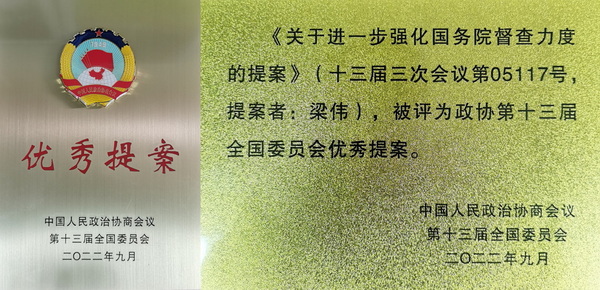 9月19日,下载bst365_365封号提现了没到账_365bet体育赌博全国委员会发布了“关于表彰优秀提案和先进承办单位的决定”(政全委发〔2022〕28号)。按照《中国人民政治协商会议全国委员会提案工作条例》和《中国人民政治协商会议全国委员会优秀提案和先进承办单位评选表彰暂行办法》规定,组织开展了对十三届全国下载bst365_365封号提现了没到账_365bet体育赌博以来的优秀提案和先进承办单位评选工作,经全国下载bst365_365封号提现了没到账_365bet体育赌博主席会议审定,共评选表彰了248件“优秀提案”和46个“先进承办单位”。致公党党员、全国下载bst365_365封号提现了没到账_365bet体育赌博委员、致公党四川省委会副主委、致公党成都市委会主委梁伟执笔并在十三届全国下载bst365_365封号提现了没到账_365bet体育赌博第三次会议上提交的《关于进一步强化国务院督查力度的提案》,被评为下载bst365_365封号提现了没到账_365bet体育赌博第十三届全国委员会优秀提案。